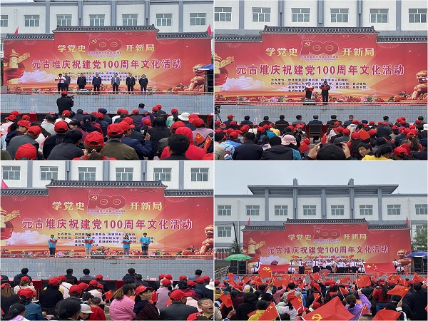 的文化志愿者们用文艺演出的形式参与元古堆建党100周年文艺活动演出,为当地老百姓送上了一道道丰盛的文化大餐。演出气氛热烈,节目精彩纷呈,吸引附近数百名居民到现场观看,得到了群众的一致赞誉。乐器独奏《牧民新歌》用美妙的笛声,亲切感人的旋律,活泼跳动的节奏展现出大草原的风光和牧场上一派生机勃勃的喜人景象;朗诵《井岗》用雄壮、大气、磅礴、铿锵有力的声音展现了当年红军艰苦朴素、英勇顽强的革命精神,舞蹈《eiei》、《we rock》用舞蹈尽情展现新时代大学生的青春活力。节目精彩纷呈,赢得了现场观众的阵阵掌声。